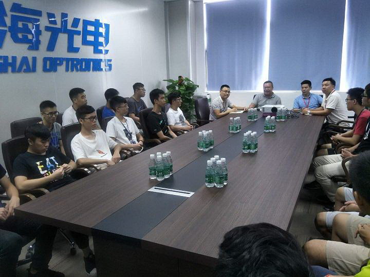 2018年8月1日公司领导组织全体佛山科学技术学院实习学生进行座谈会,会议由钱副总主持,参会人员有副厂长汤宁宁、生产部副经理余享舟、人力行政部经理何永尧以及到场全部实习学生。 会议中钱副总代表公司向全体实习学生表示热烈欢迎,并就公司情况作详细说明,随后听取学生的诉求,同时指示各相关部门做好技术培训和后勤保障工作。会议在和谐气氛中结束。