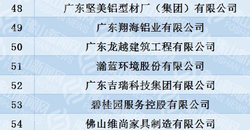 荣耀体育在线注册_荣耀体育(中国)铝业入榜2019佛山企业100强