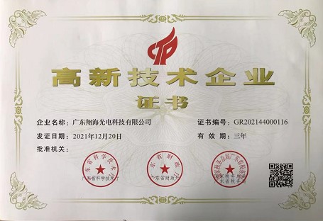 近日,集团子公司广东荣耀体育在线注册_荣耀体育(中国)荣耀体育在线注册_荣耀体育(中国)有限公司(下称“光电公司”)顺利通过前期一系列的国家高新技术企业认定审查工作,获得了由广东省科技厅、财政厅和国税总局广东省分局联合颁发的《高新技术企业证书》。